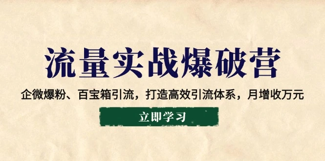 流量实战爆破营:企微爆粉、百宝箱引流,打造高效引流体系,月增收万元